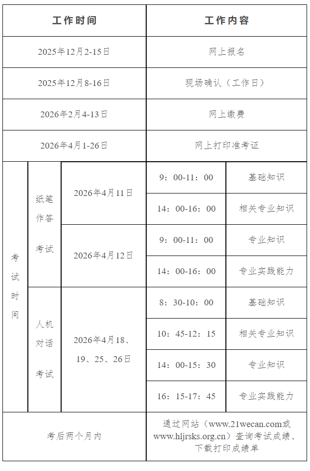 报考人员按规定时间登录“考生管理平台”,打印准考证。打印后,请仔细核对准考证上各项信息,如有问题需在准考证打印截止日期前与报名市(地)考试机构联系,咨询电话详见黑龙江省人事考试网“联系方式”栏。