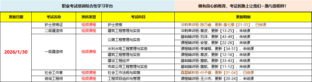 职业考试培训综合性学习平台,做有良心的教育,考证路上让我们一路与您相伴!